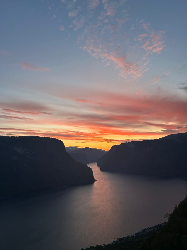 Before heading down towards Flåm, you pass Stegastein. The platform extends out over the fjord and gives you an incredible view of Aurlandsfjorden and the surrounding mountains. It’s one of those places where photos don’t really do it justice — you just have to stand there for a while and take it in.